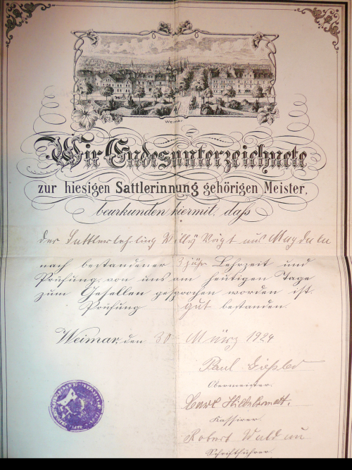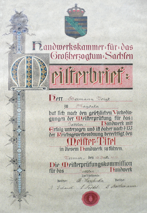 Gegründet wurde die Sattlerei ca. 1860 von Sattlermeister Herrmann Voigt, geb. 1840 gest. 1923.