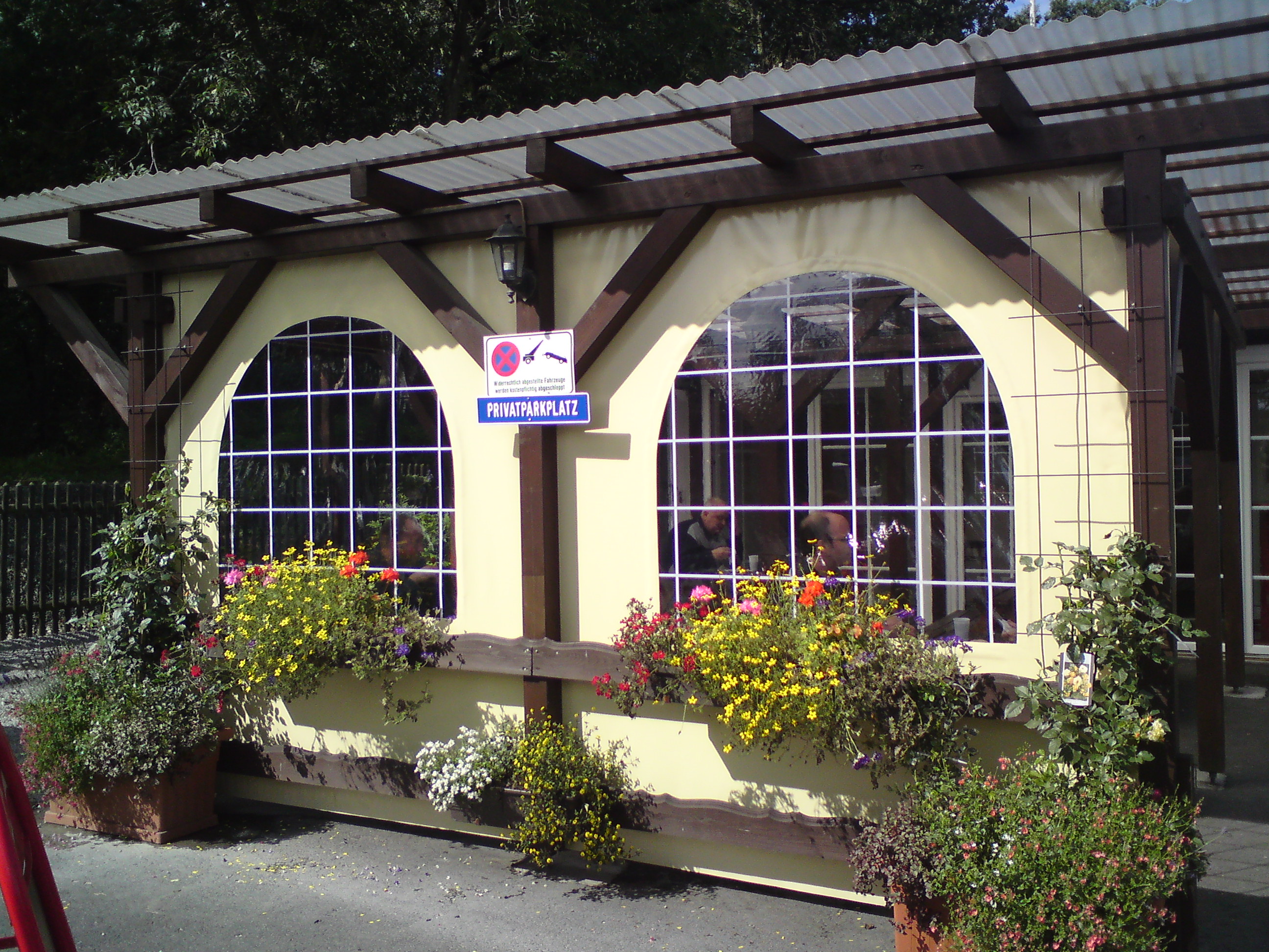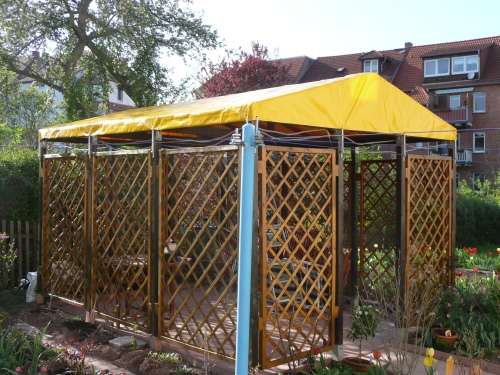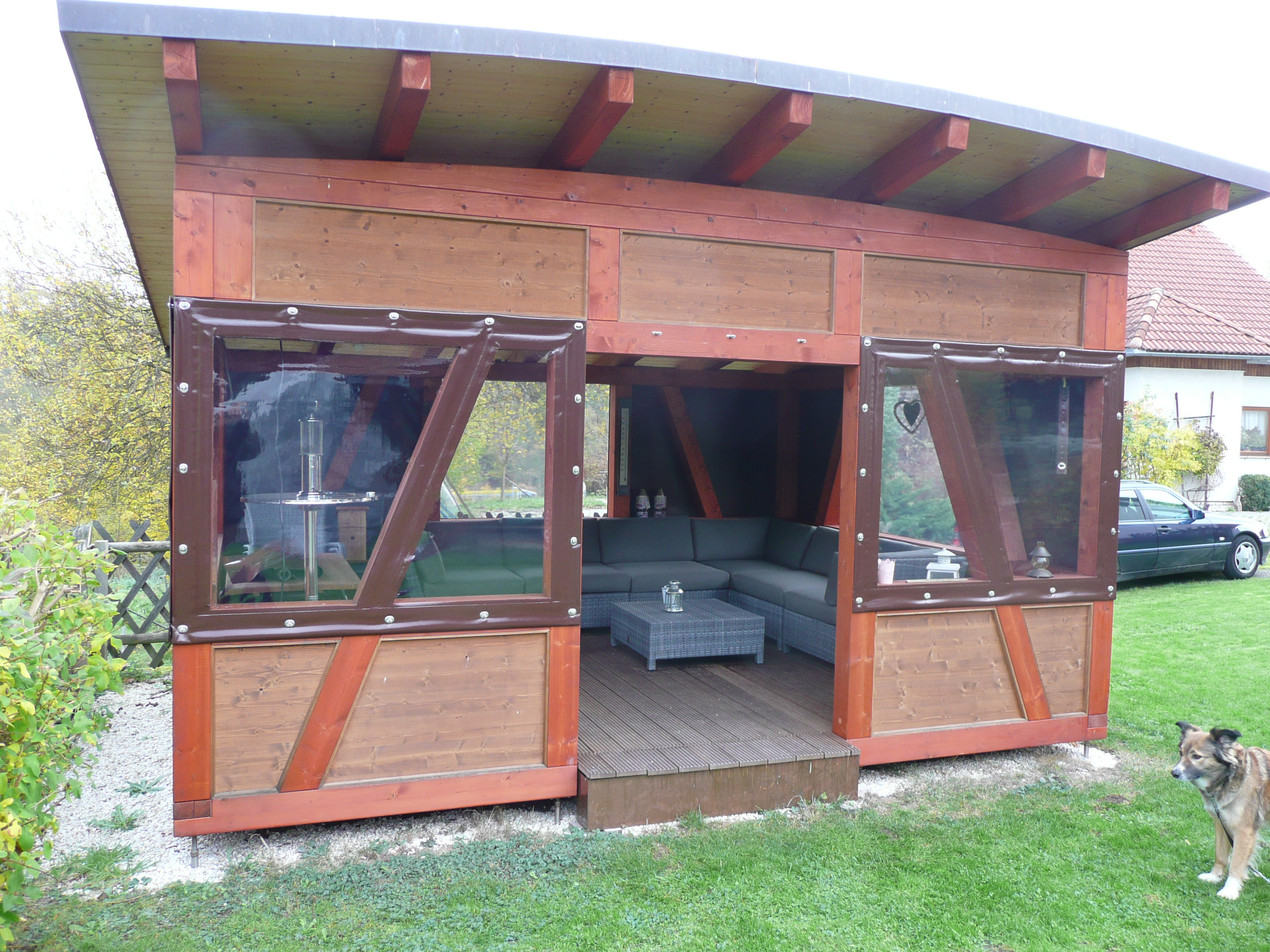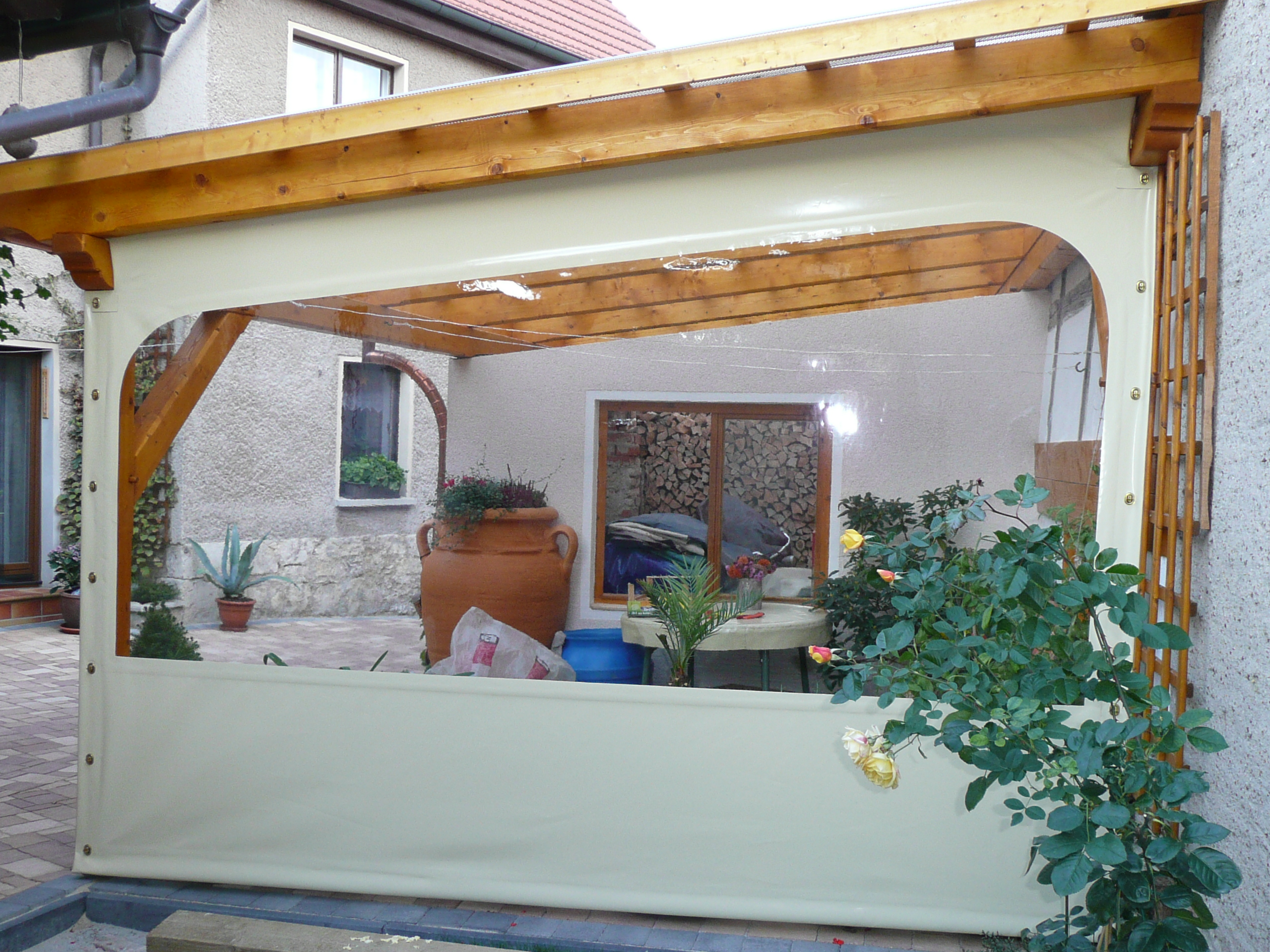 Terrassenverkleidung aus Planenstoff mit Foliefenstern