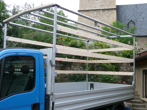 Aufbau eines Spriegelgestells für einen Kleintransporter